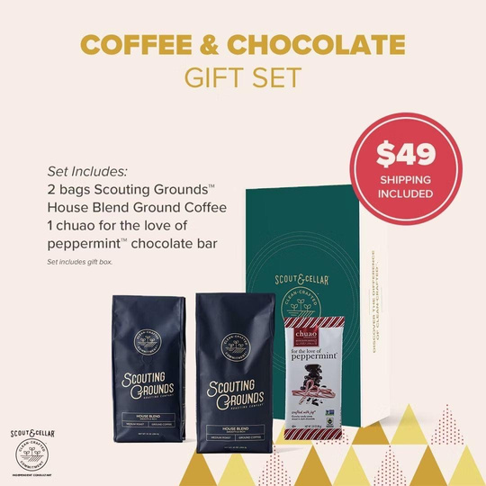 Our deliciously smooth House Blend coffee and peppermint chocolate from our friends at chuao chocolatier® are a match made in heaven, ready to keep you warm and cozy all season long. Pro Tip: Dunk that peppermint chocolate in your coffee to give you an extra holiday boost!